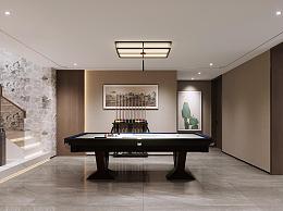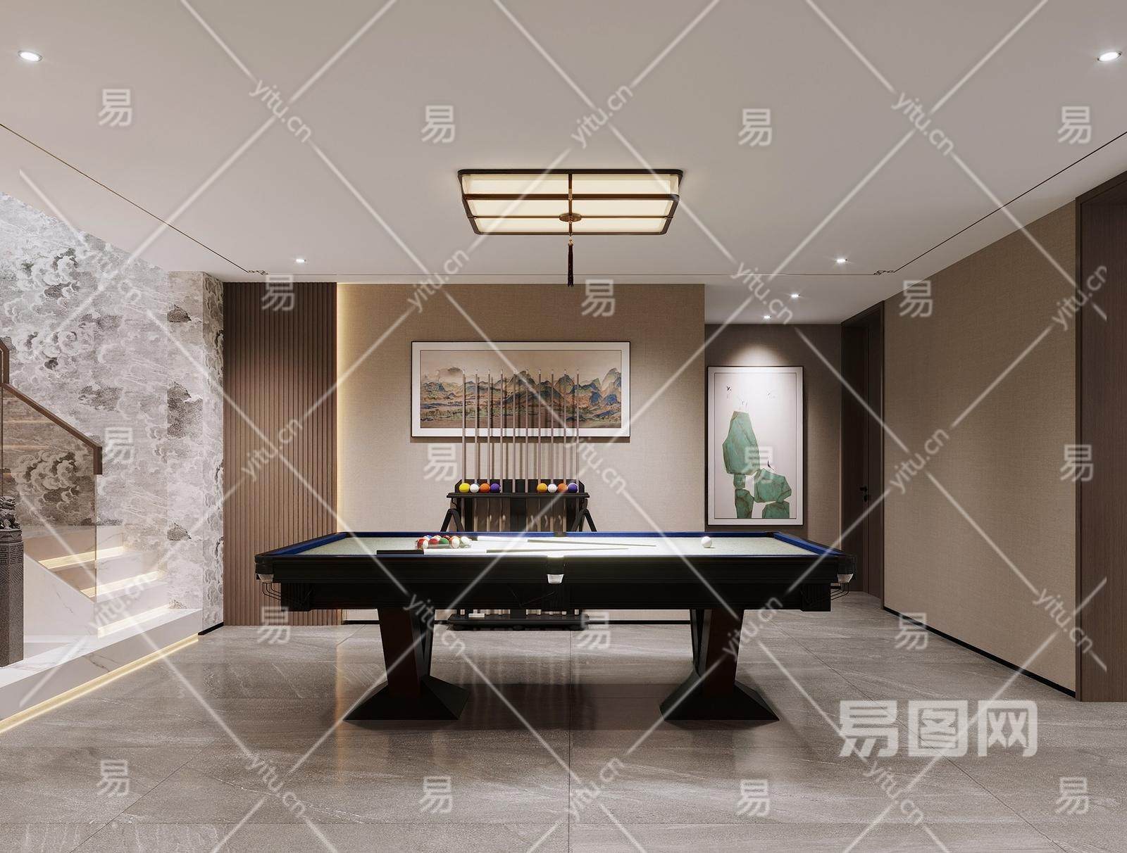 新中式台球室 台球室 台球厅 台球桌 台球杆 台球