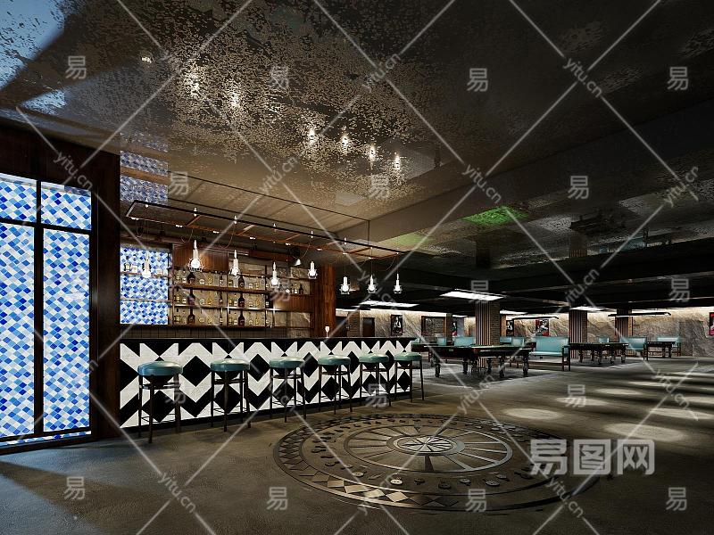 现代台球室 台区俱乐部 吧台前台 台球娱乐室 台球桌