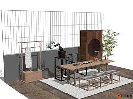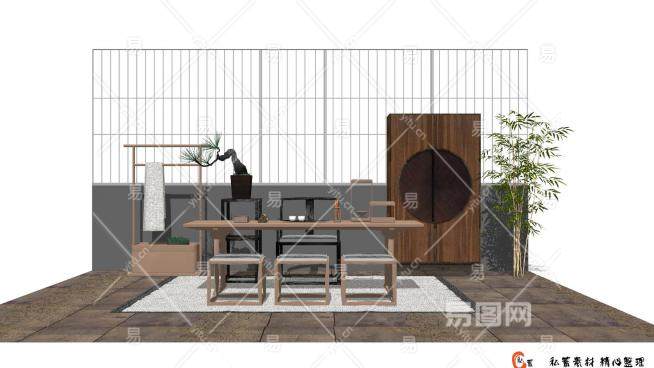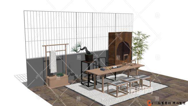 新中式禅风茶室SU模型下载_sketchup草图大师SKP模型