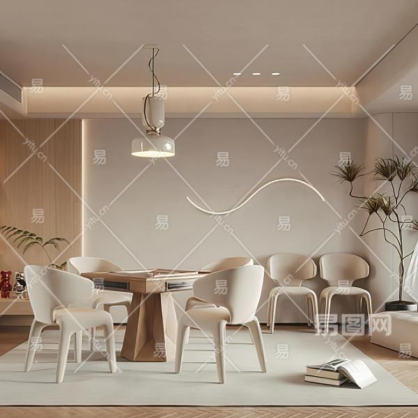 侘寂风棋牌室 娱乐室 棋牌室 棋牌桌麻将桌