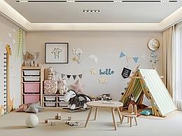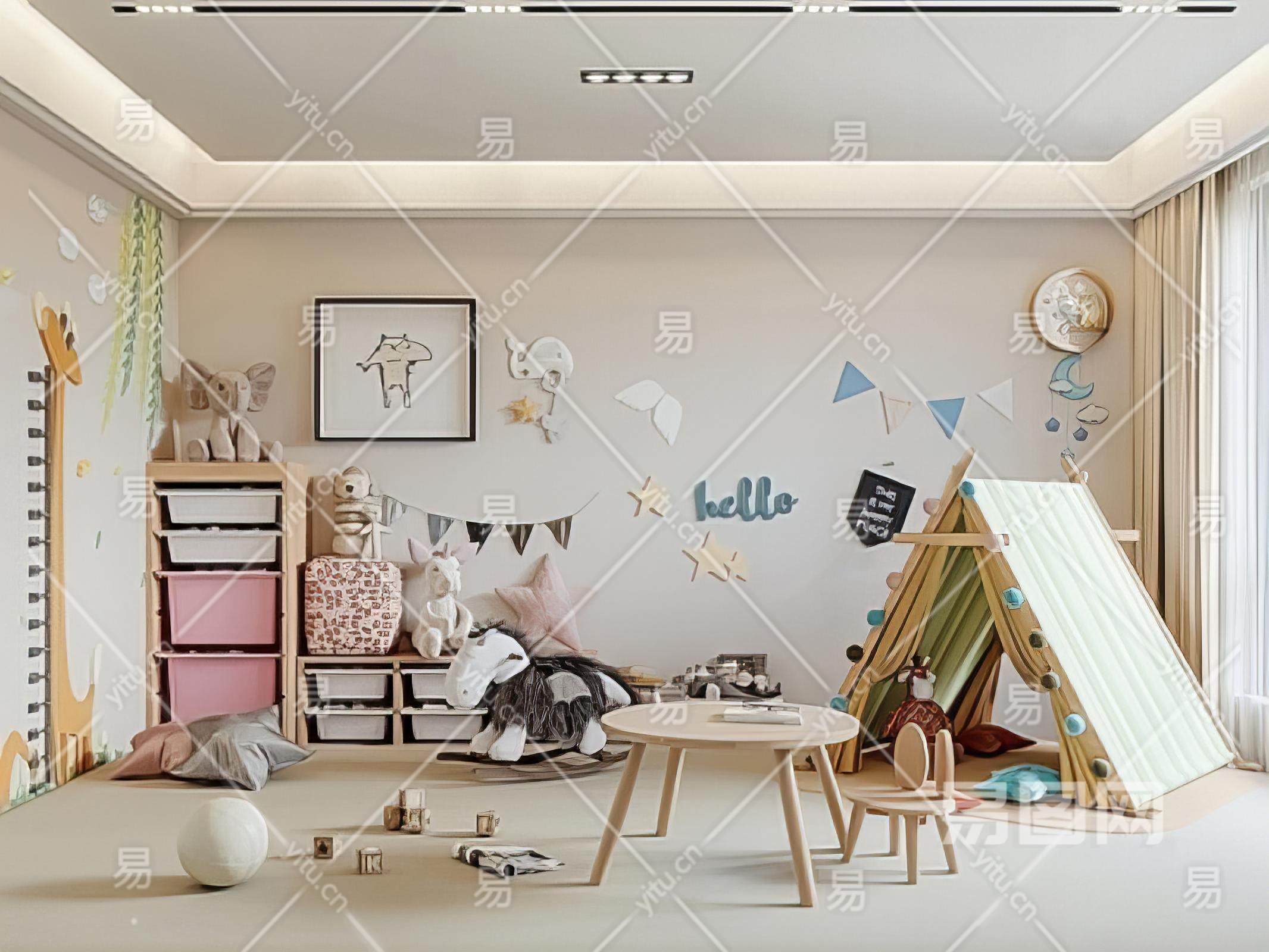 现代儿童玩具房 玩具收纳柜 帐篷 儿童桌椅