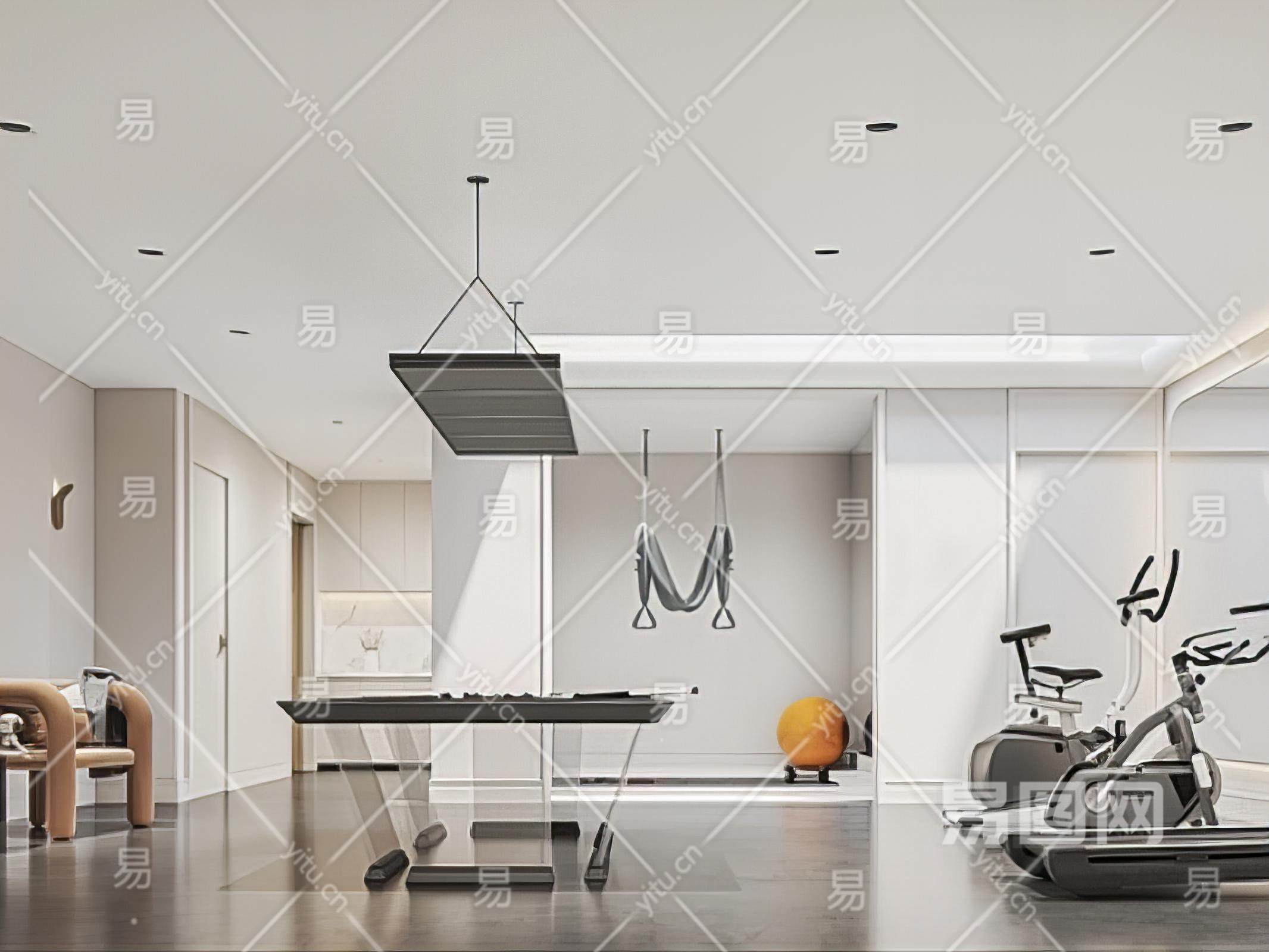 现代娱乐室 家居健身房 台球室 沙发 跑步机