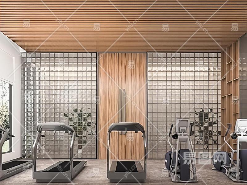 现代家居健身室 娱乐室 健身器材 动感单车 运动器械