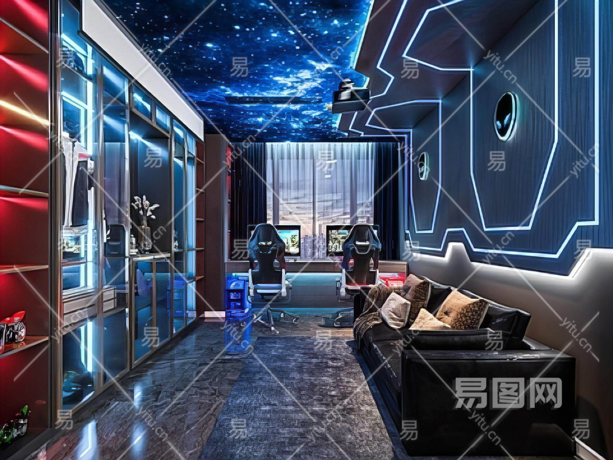 现代电竞房 电脑房 电竞室 游戏房 手办展示柜