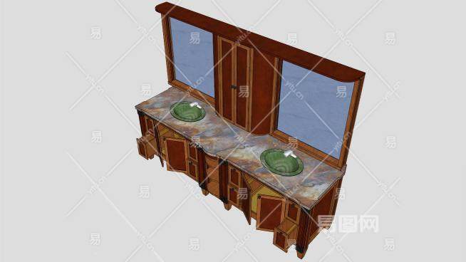 复古洗浴梳妆台SU模型下载_sketchup草图大师SKP模型