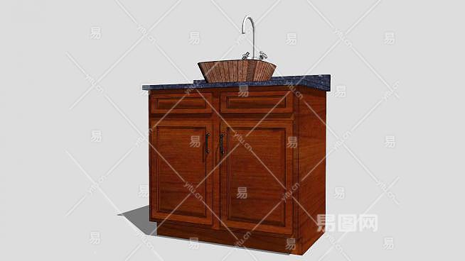 美式实木浴室柜SU模型下载_sketchup草图大师SKP模型