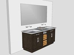 双浴室柜洗手池镜子SU模型下载_sketchup草图大师SKP模型