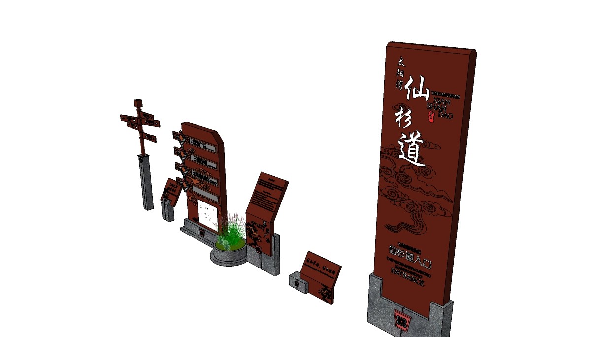 中式旅游区道路指示牌su模型下载、旅游区道路指示牌草图大师模型