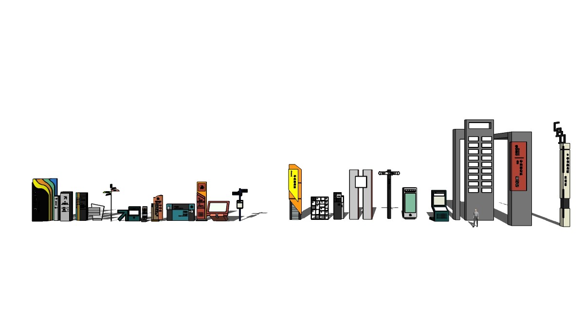 现代道路指示牌组su模型下载、道路指示牌组草图大师模型下载