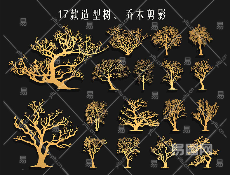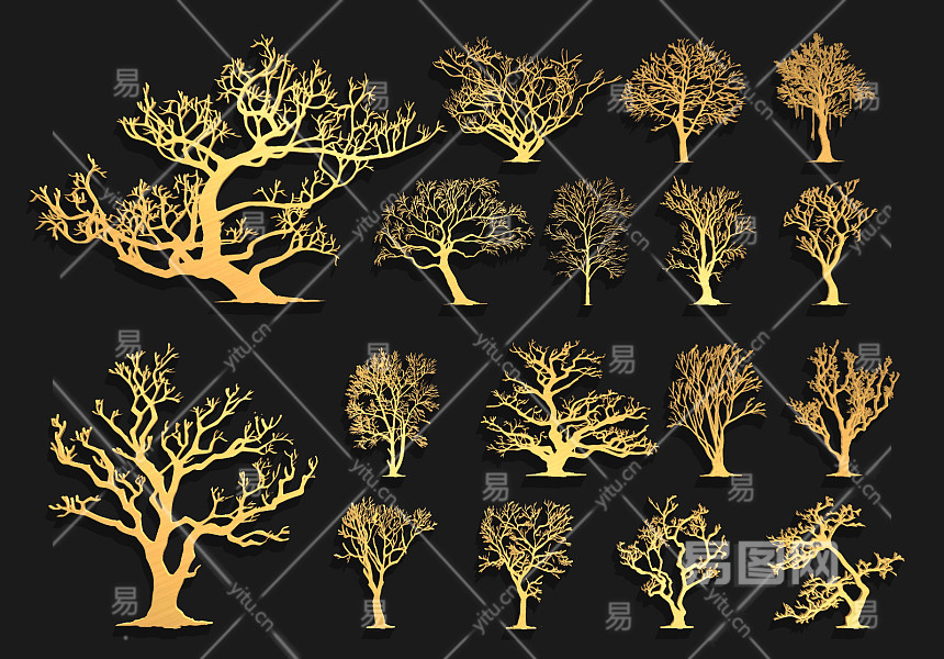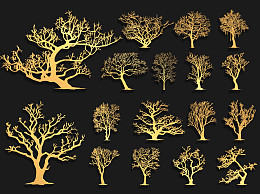 现代植物剪影 乔木树木图标 枯树图案 造型树