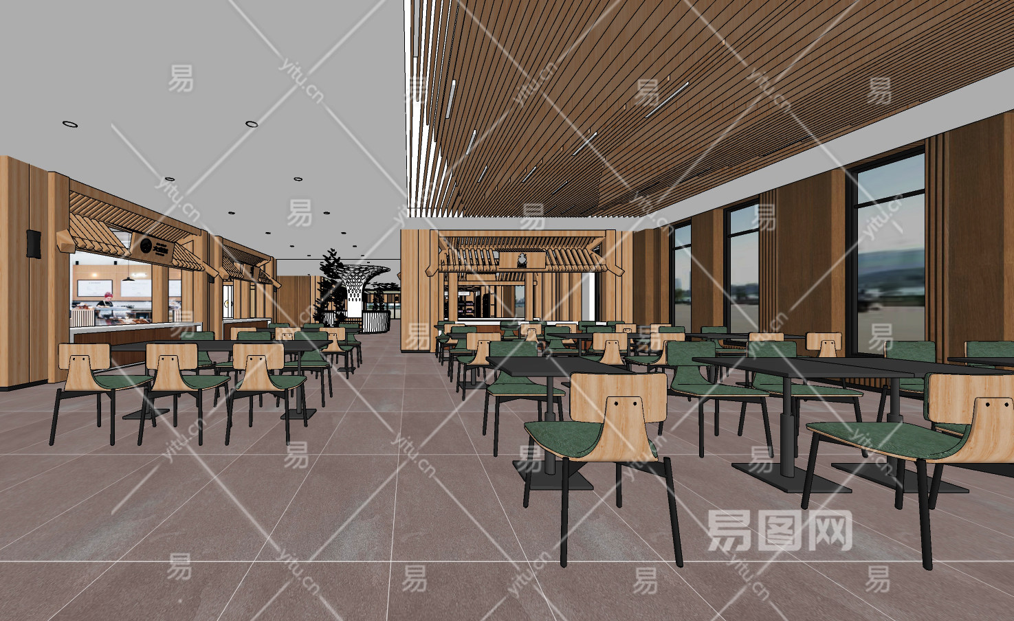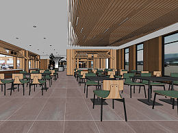 现代轻奢快餐厅 员工餐厅su草图模型下载