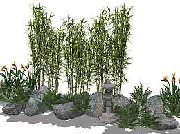 新中式,日式景观植物,竹林,竹子,石头石头庭院灯su草图模型下载