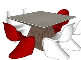 现代实木餐桌椅su模型