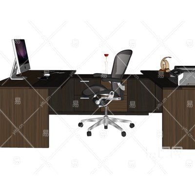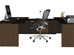 现代实木办公桌椅su模型