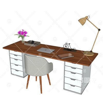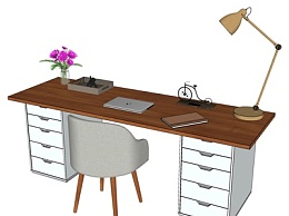北欧实木书桌椅su模型