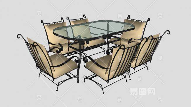 欧式铁艺室外桌椅SU模型下载_sketchup草图大师SKP模型