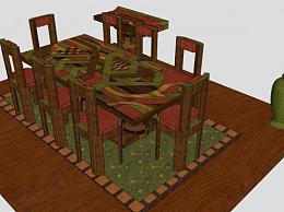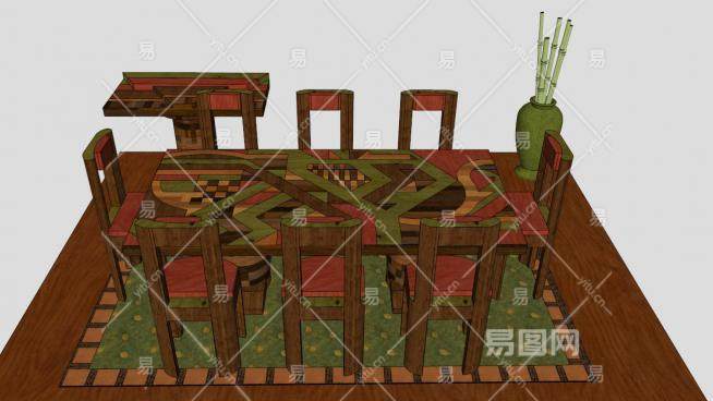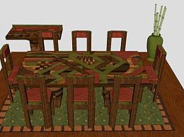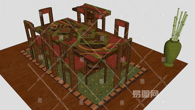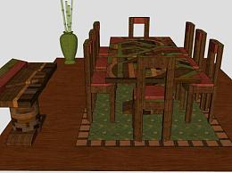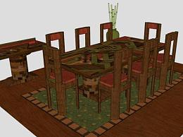 中式桌椅组合SU模型下载_sketchup草图大师SKP模型