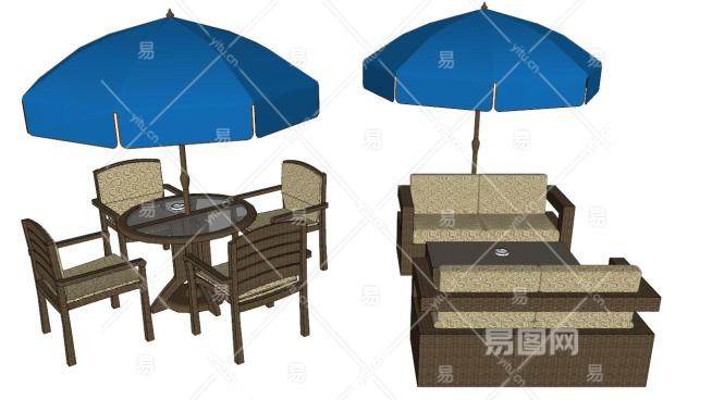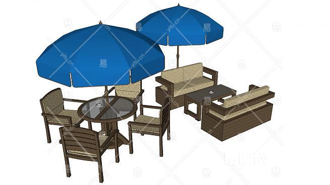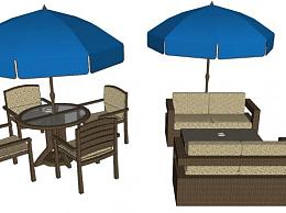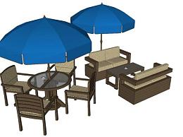 户外遮阳伞桌椅skp模型下载_sketchup草图大师SKP模型
