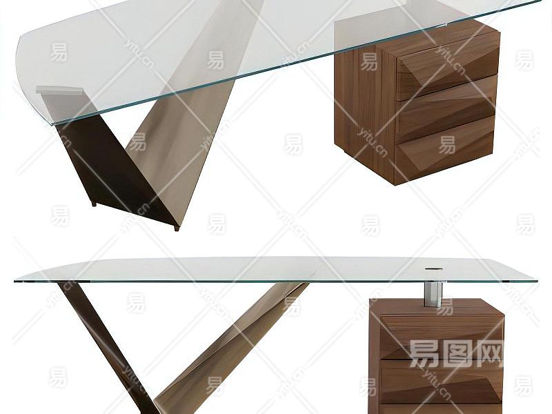 现代创意玻璃木制书桌