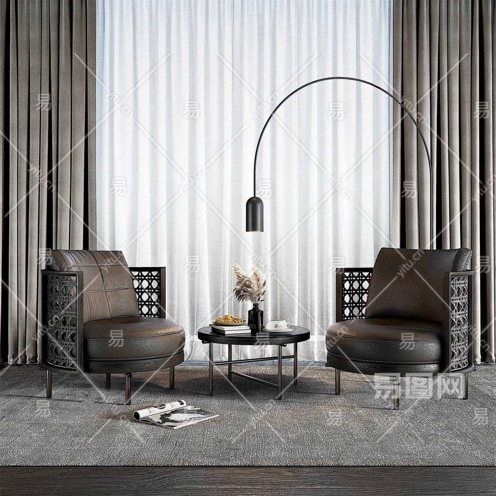 Minotti现代单椅茶几组合