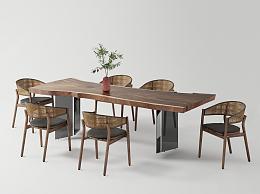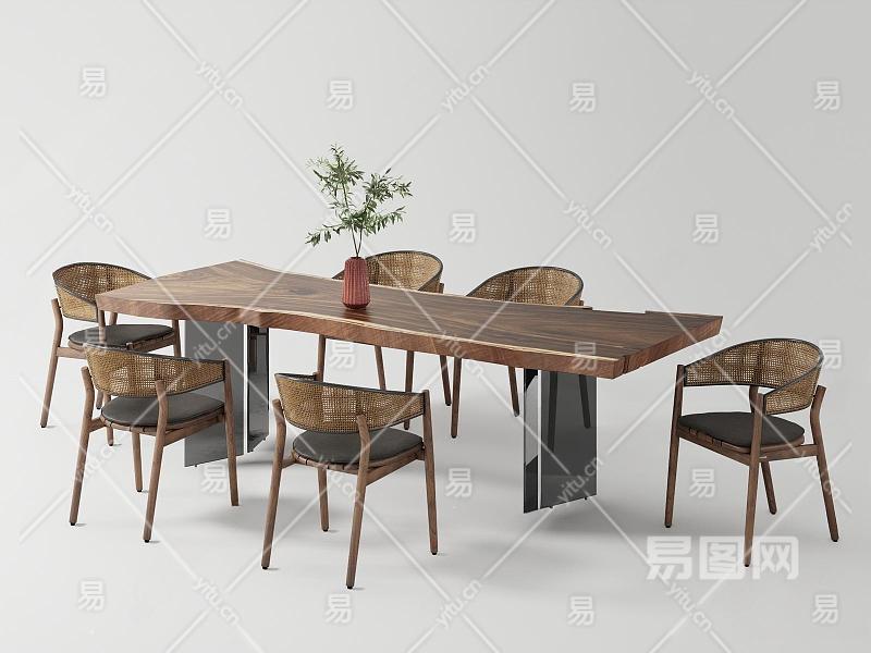 现代原木餐桌茶桌 休闲桌 编织椅