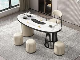 现代茶桌椅组合 大理石泡茶桌 岩板茶台 金属椅 沙发凳 茶具 书柜 水壶
