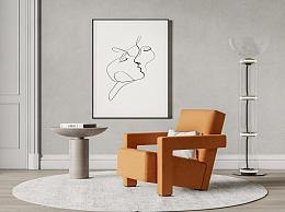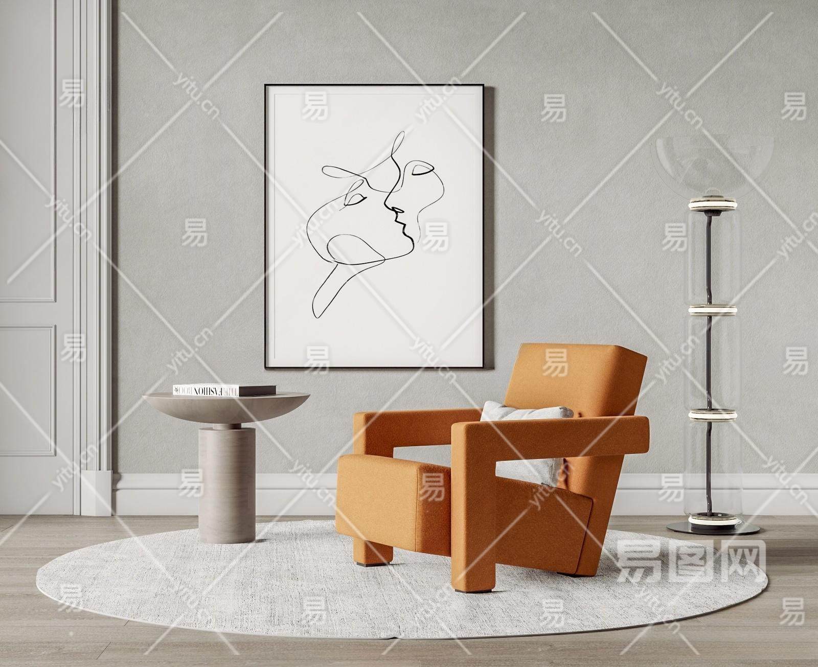 乌德勒支椅现代休闲椅 沙发椅 茶几 玻璃透明落地灯 装饰画 地毯