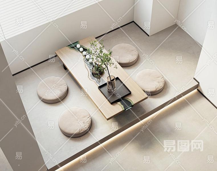 侘寂风榻榻米茶桌椅 茶桌椅 茶具 坐垫