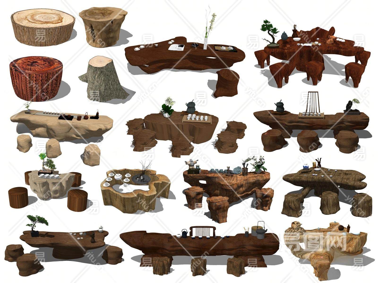 当前的位置:首页 > sketchup > sketchup模型 > 椅子 > 桌椅组合 > 新中式根雕茶台组合 木桌椅 木凳
