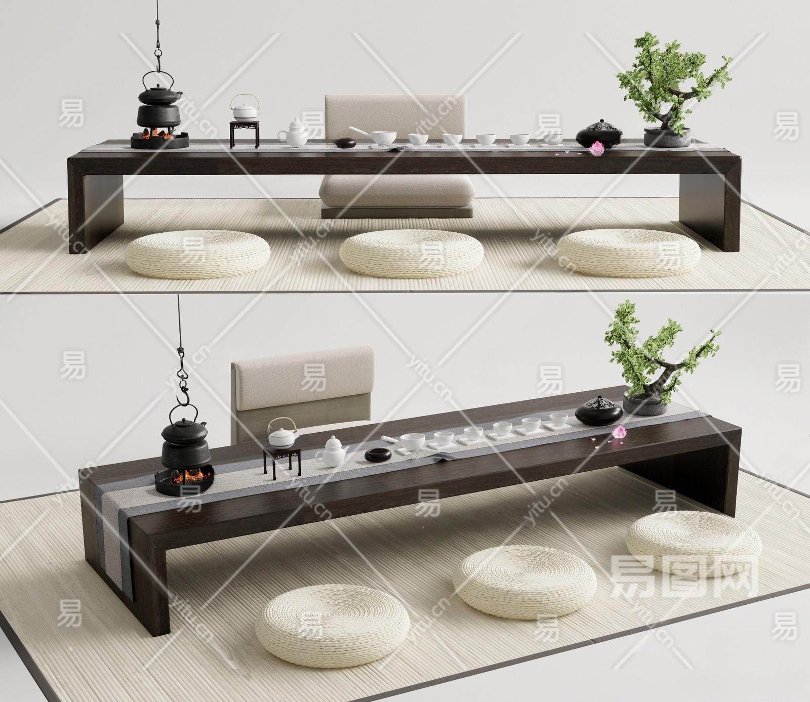日式榻榻米茶桌椅 茶台 蒲团