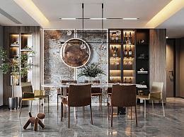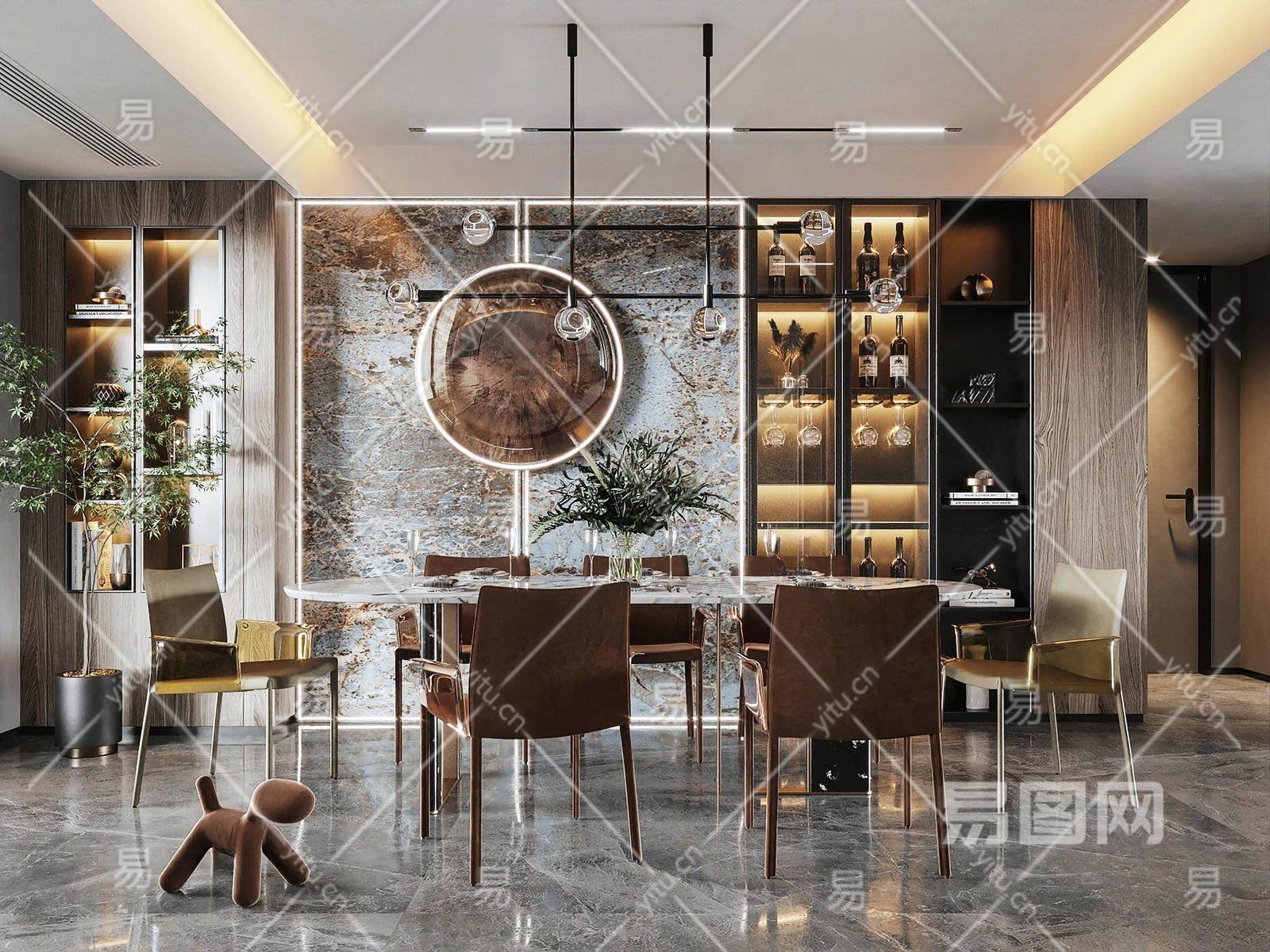 现代轻奢餐厅 餐桌椅D模型