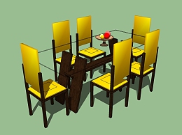 现代实木户外桌椅组合草图大师模型,户外桌椅组合sketchup模型