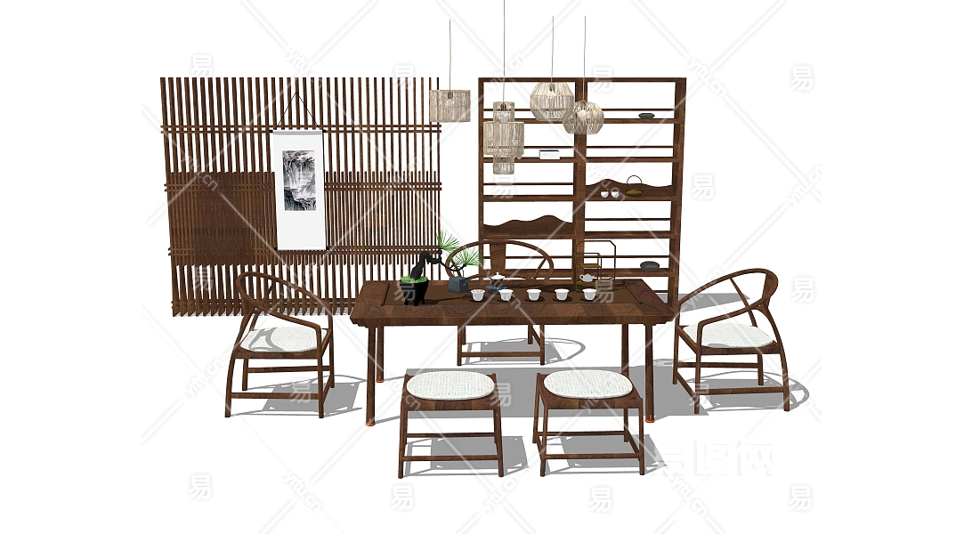 当前的位置:首页 > sketchup > sketchup模型 > 椅子 > 桌椅组合 > 新中式茶室桌椅组合