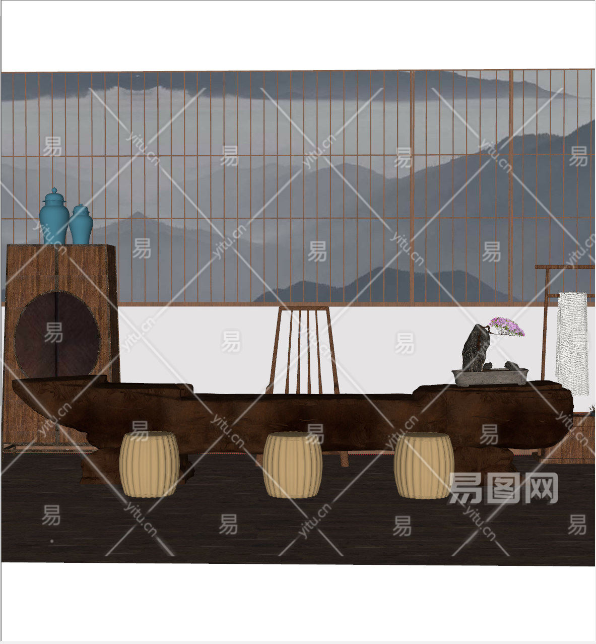 新中式禅意家具su