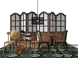 工业风家具饰品组合草图大师模型下载、工业风家具饰品组合su模型下载