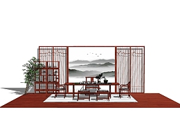 中式桌椅组合sketchup模型,桌椅组合草图大师模型下载