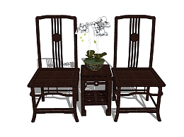 新中式精品桌椅组合草图大师模型,单椅sketchup模型下载