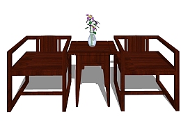 新中式精品桌椅组合SU模型,单椅sketchup模型下载