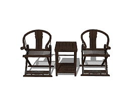 中式桌椅组合sketchup模型,桌椅组合草图大师模型下载