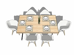 北欧桌椅组合su模型,桌椅组合草图大师模型下载