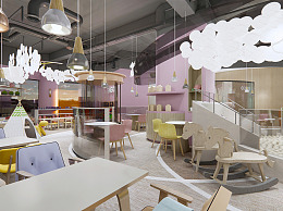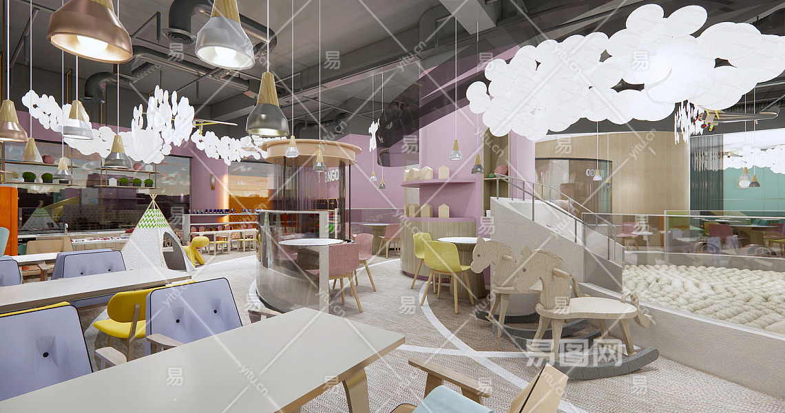 现代儿童亲子主题餐厅 亲子游乐场 滑梯