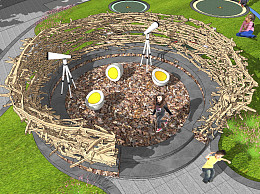 现代儿童游乐区 曲线流线空中栈道 生态栏杆鸟蛋瞭望台 阳光草坪林下空间 异形廊架