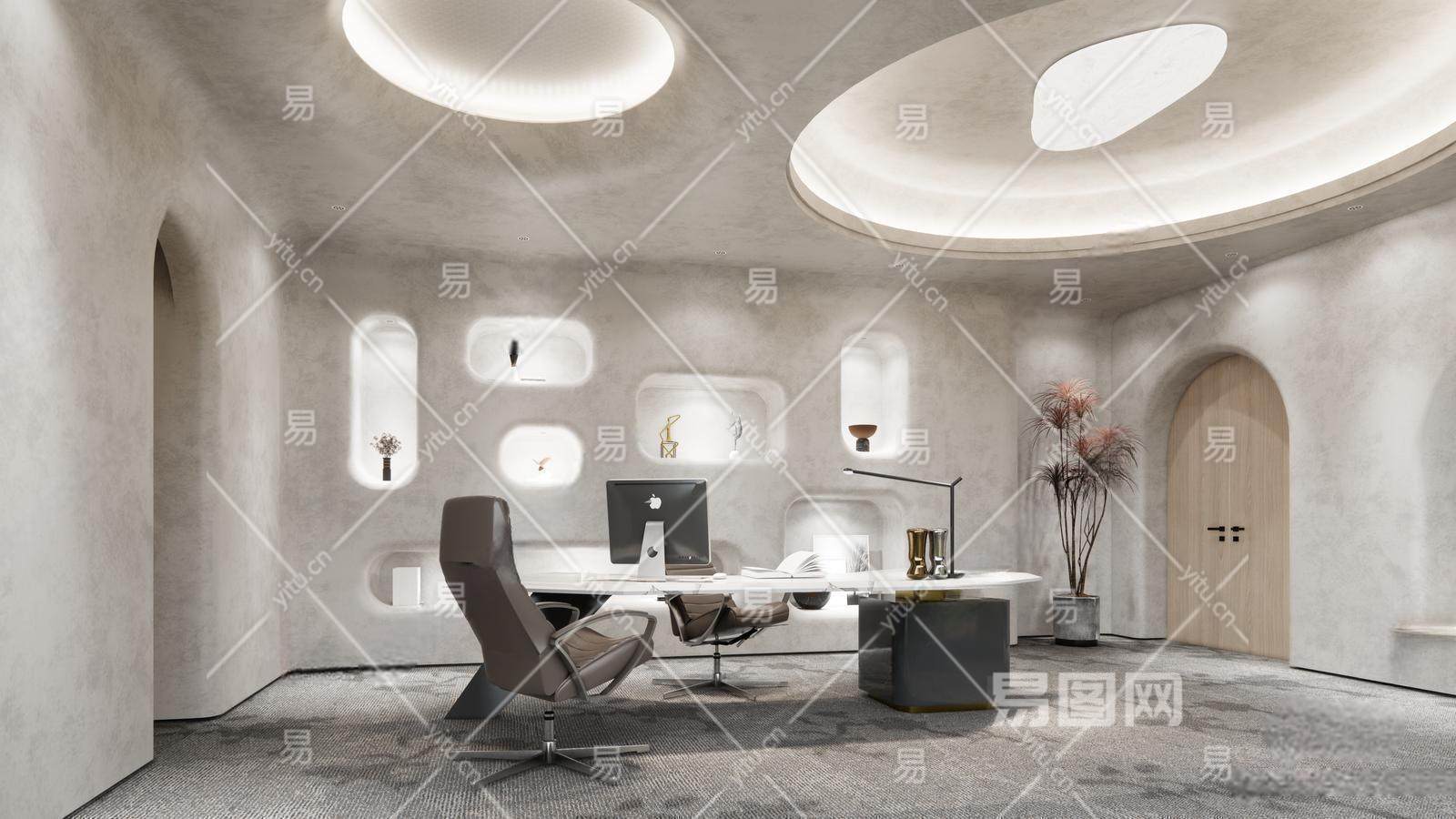 侘寂经理办公室 办公桌椅 书柜