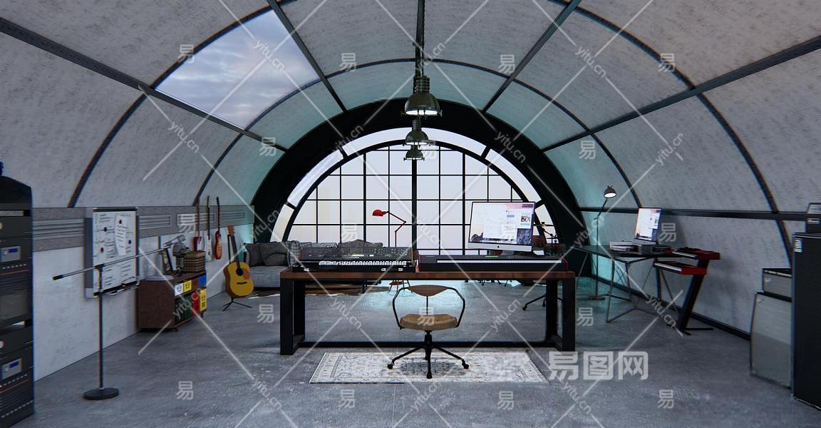 工业办公室 电脑 乐器 吉他 架子鼓 调音台 写字板