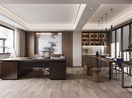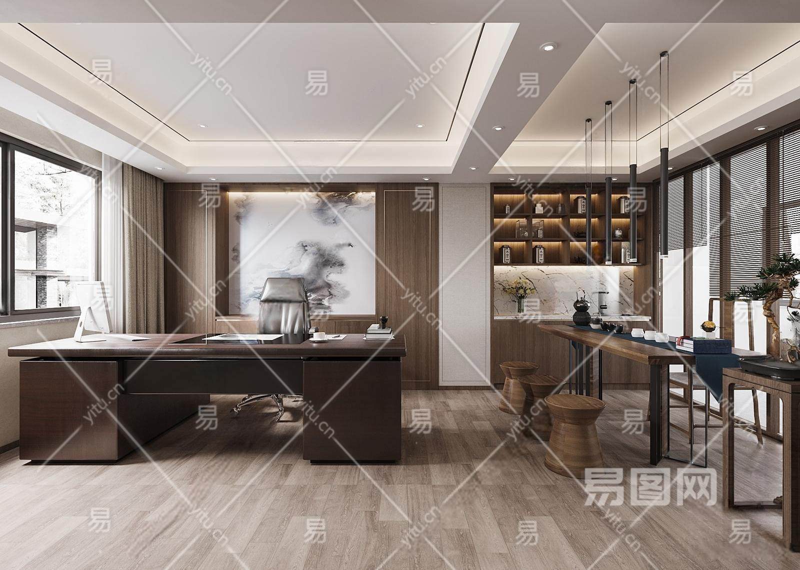 新中式经理办公室 泡茶桌椅 盆栽 摆件装饰品