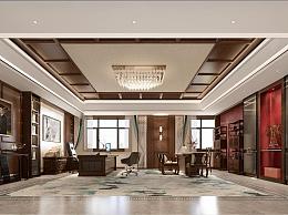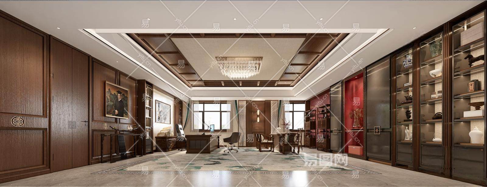 新中式董事长办公室 总经理办公室 总裁办公室 办公桌 茶桌