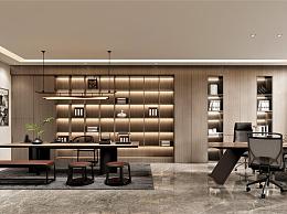 新中式董事长办公室 总经理办公室 老板办公桌椅 茶台 茶柜