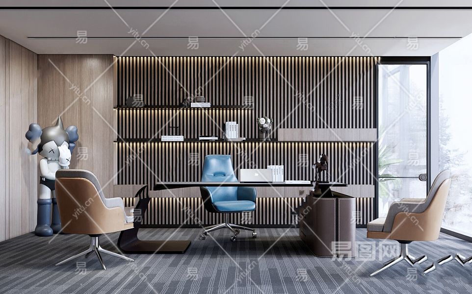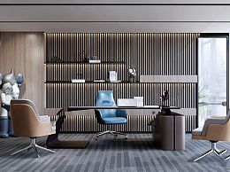 现代风格经理办公室 办公桌椅组合 摆柜 摆件 KAWS enscape