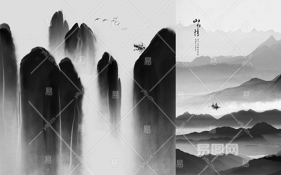 中式山水壁画贴图