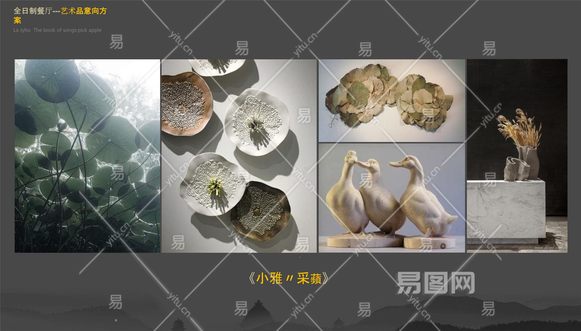 当前的位置:首页 > 文本 > 硬装方案文本 > 售楼处 > 尼山宾舍禅意酒店艺术品PPT软装方案